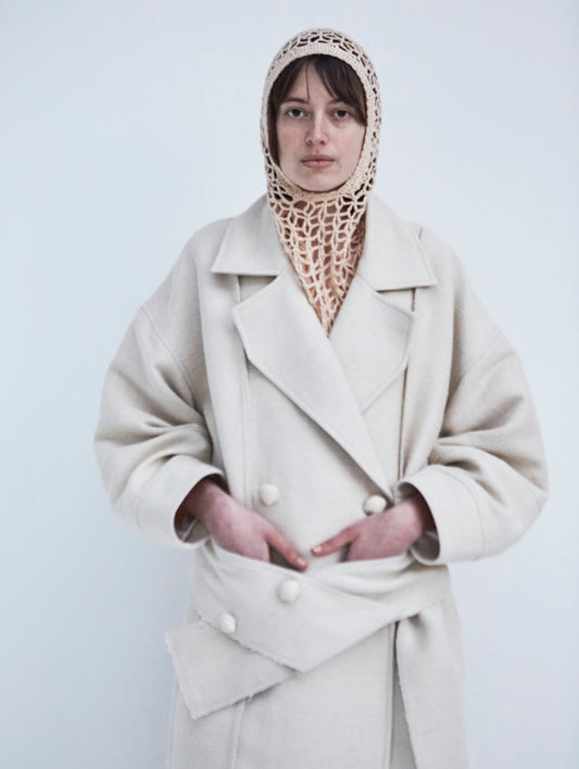 Snegurochka Cream Wool Hemp Shell Buttons Coat