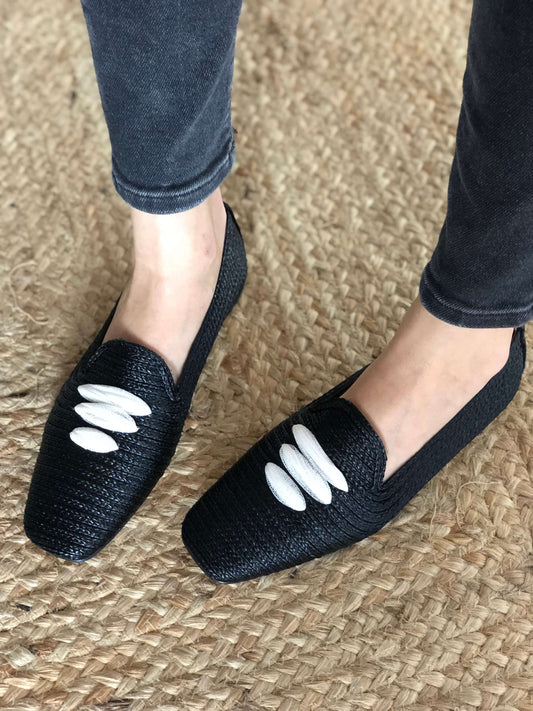 Black Casablanca Raffia Moccasin