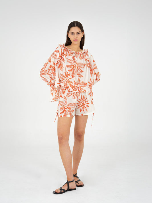 Elios Palm-Printed Smocked Top