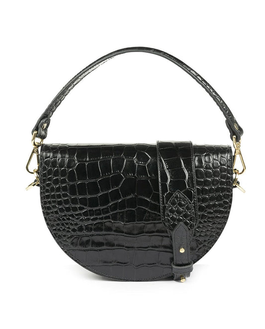 Black Coconut Embossed Leather Flap Crossbody Bag