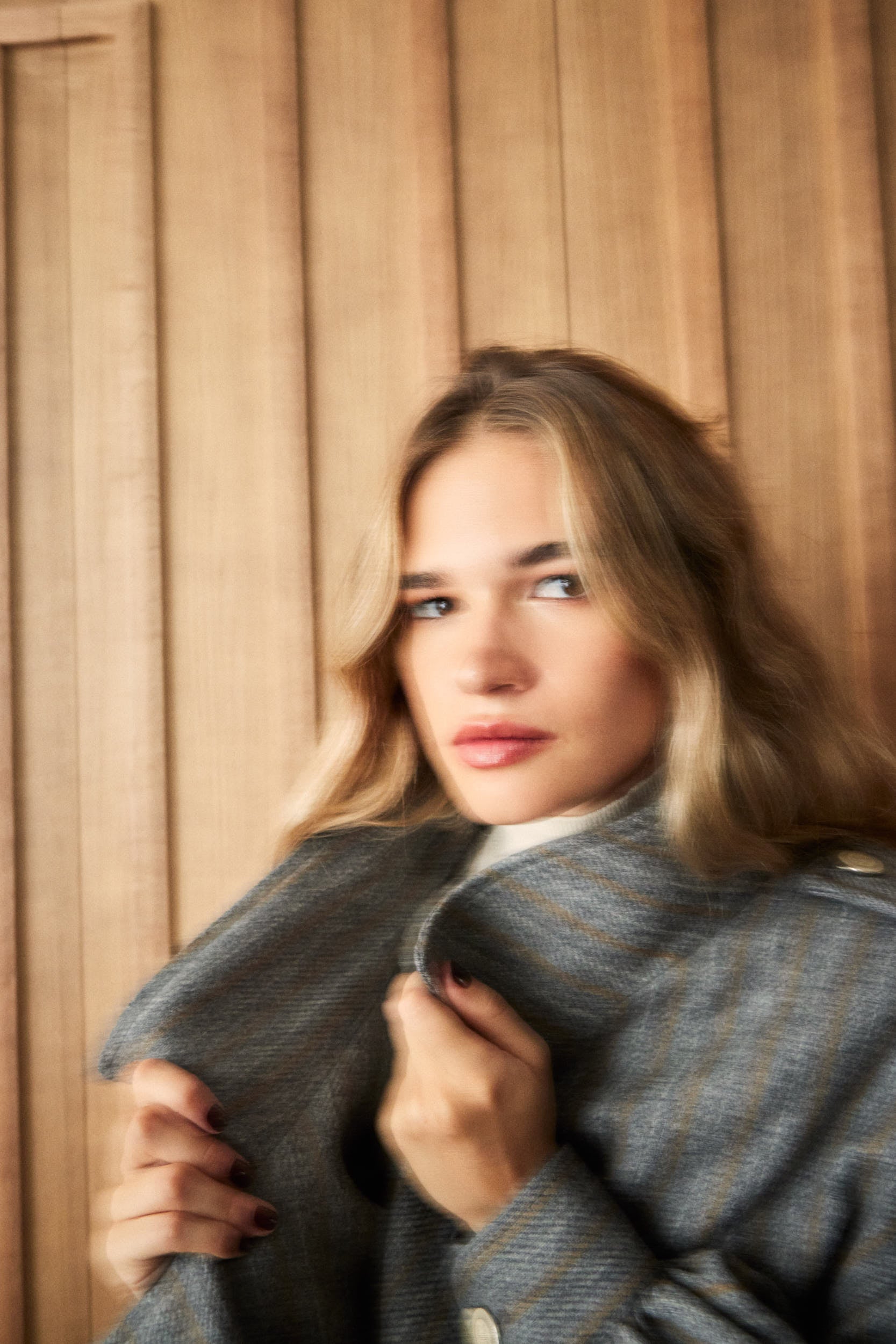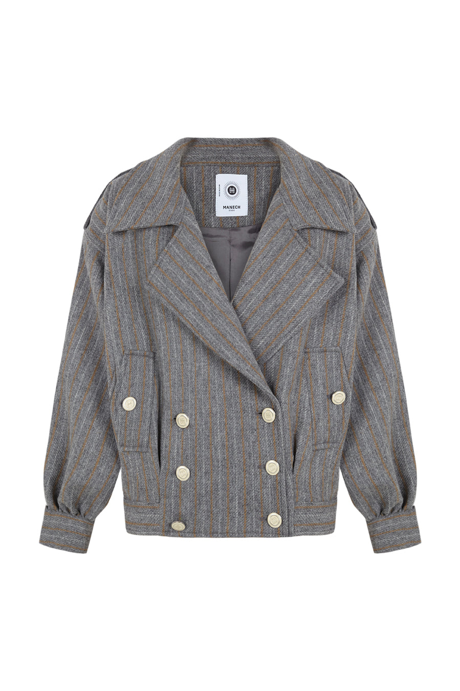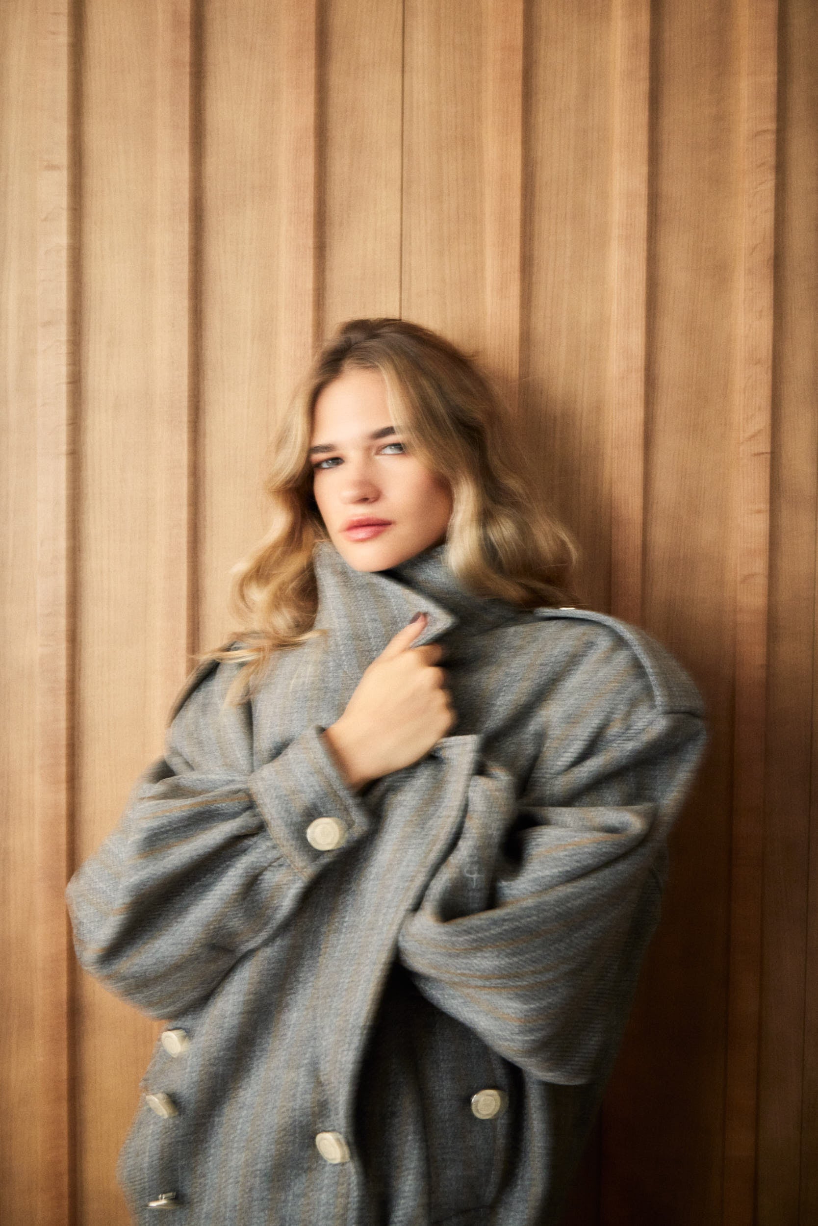 100% wool jacket with an eighties design, oversized fit, shoulder pads, lapels, and two side pockets. Sustainably made in Spain.