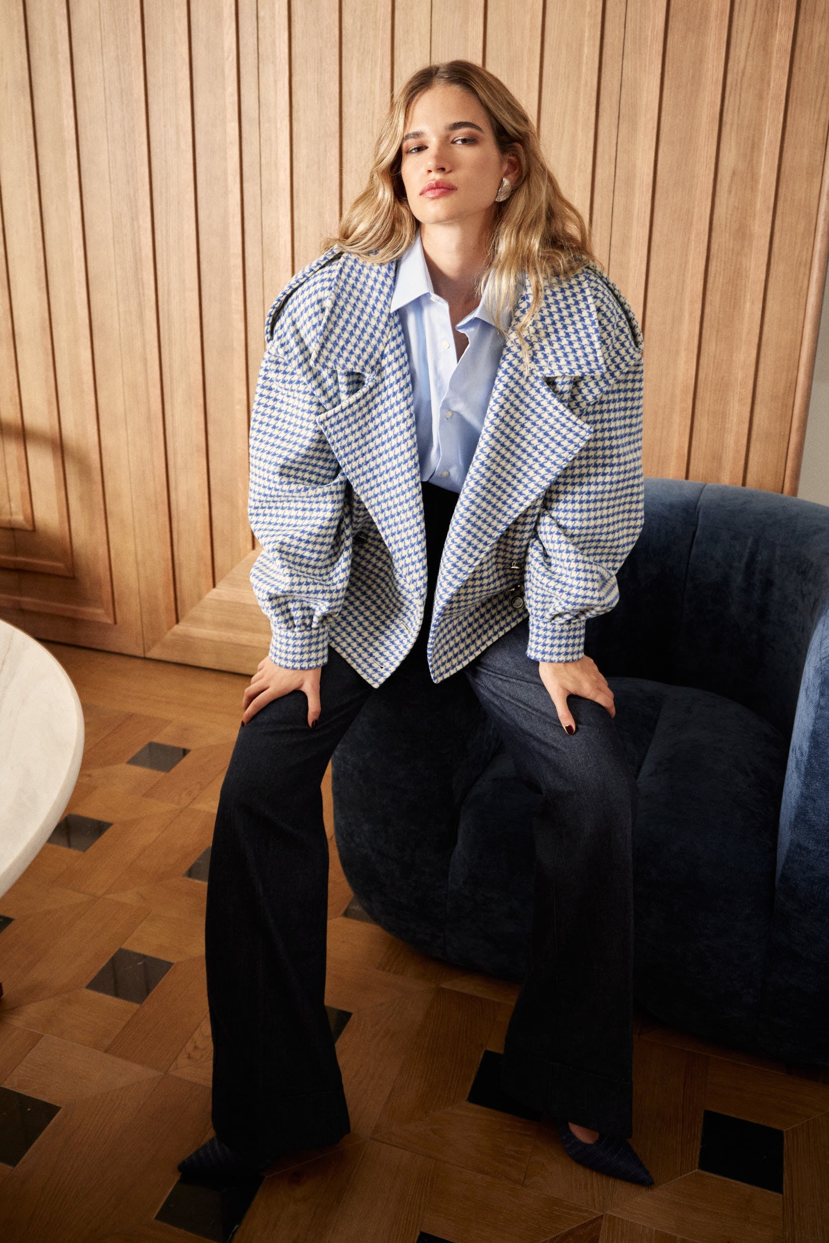 100% wool jacket with an eighties design, oversized fit, shoulder pads, lapels, and two side pockets. Sustainably made in Spain.