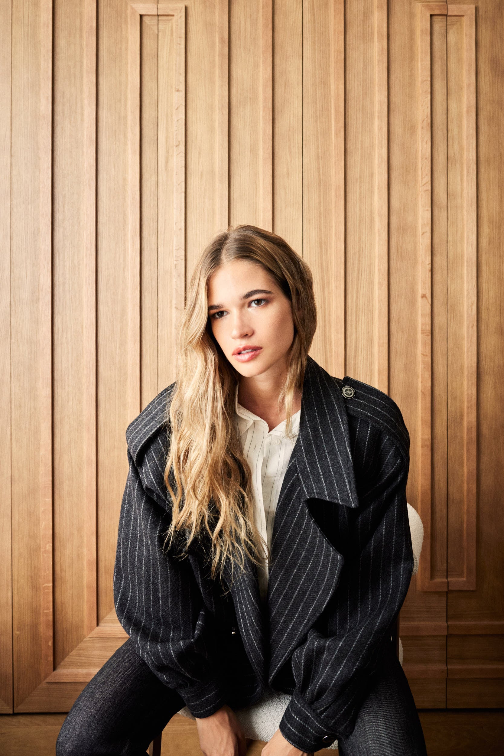 100% wool jacket with an eighties design, oversized fit, shoulder pads, lapels, and two side pockets. Sustainably made in Spain.
