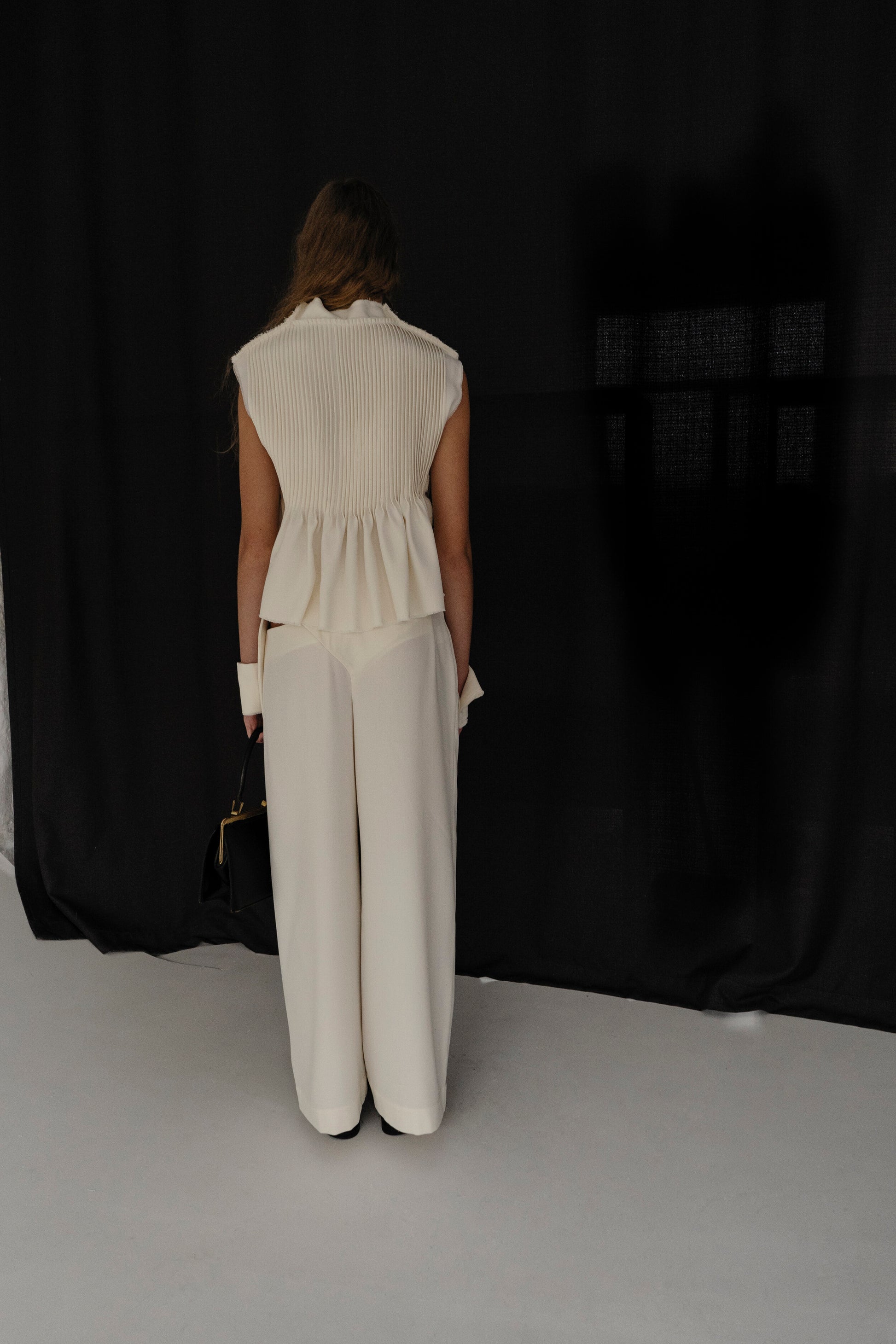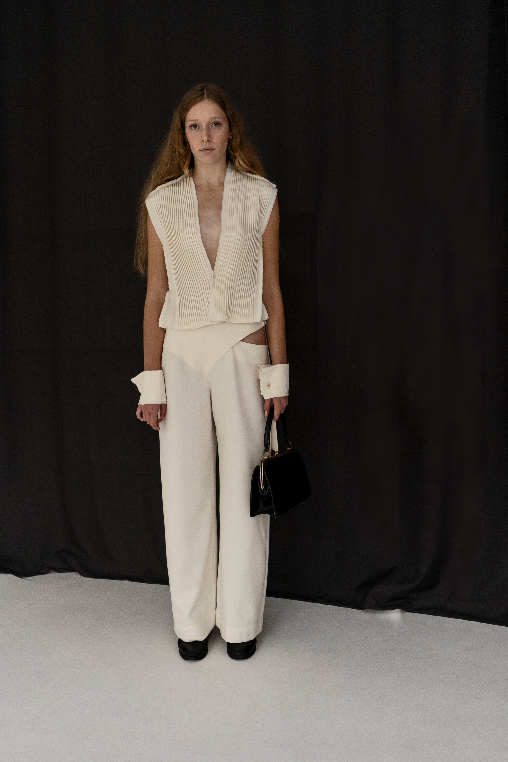 Elevating a fluid silhouette, the Cream Marry Me Trousers are a modern yet feminine style crafted from a fluid cold wool. Slightly high-waisted, this loose-leg shape falls full-length and features a side and back gap detail . Style with The Cream Raw Clips Vest to to elevate an evening look.