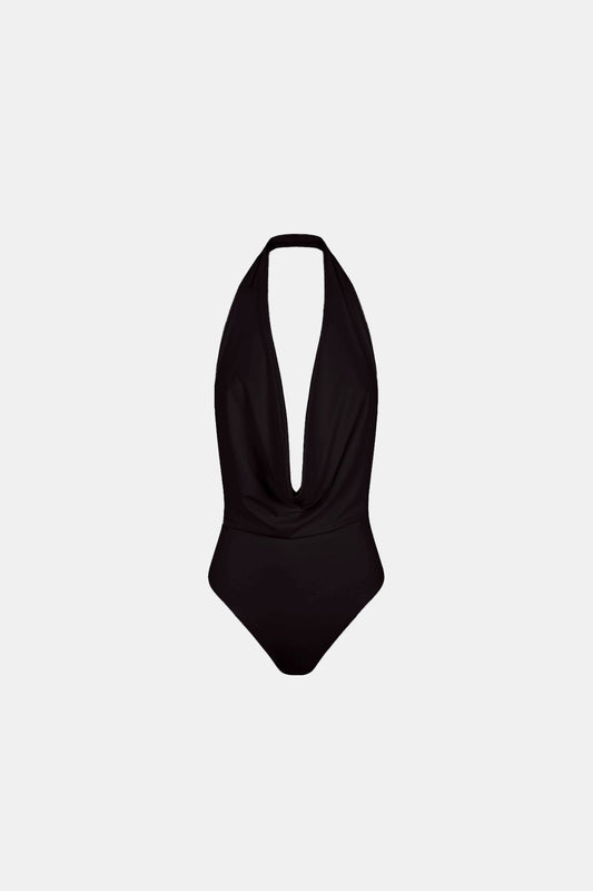 Draped One Piece with V-Neck (Limited Edition) Black - Miriam