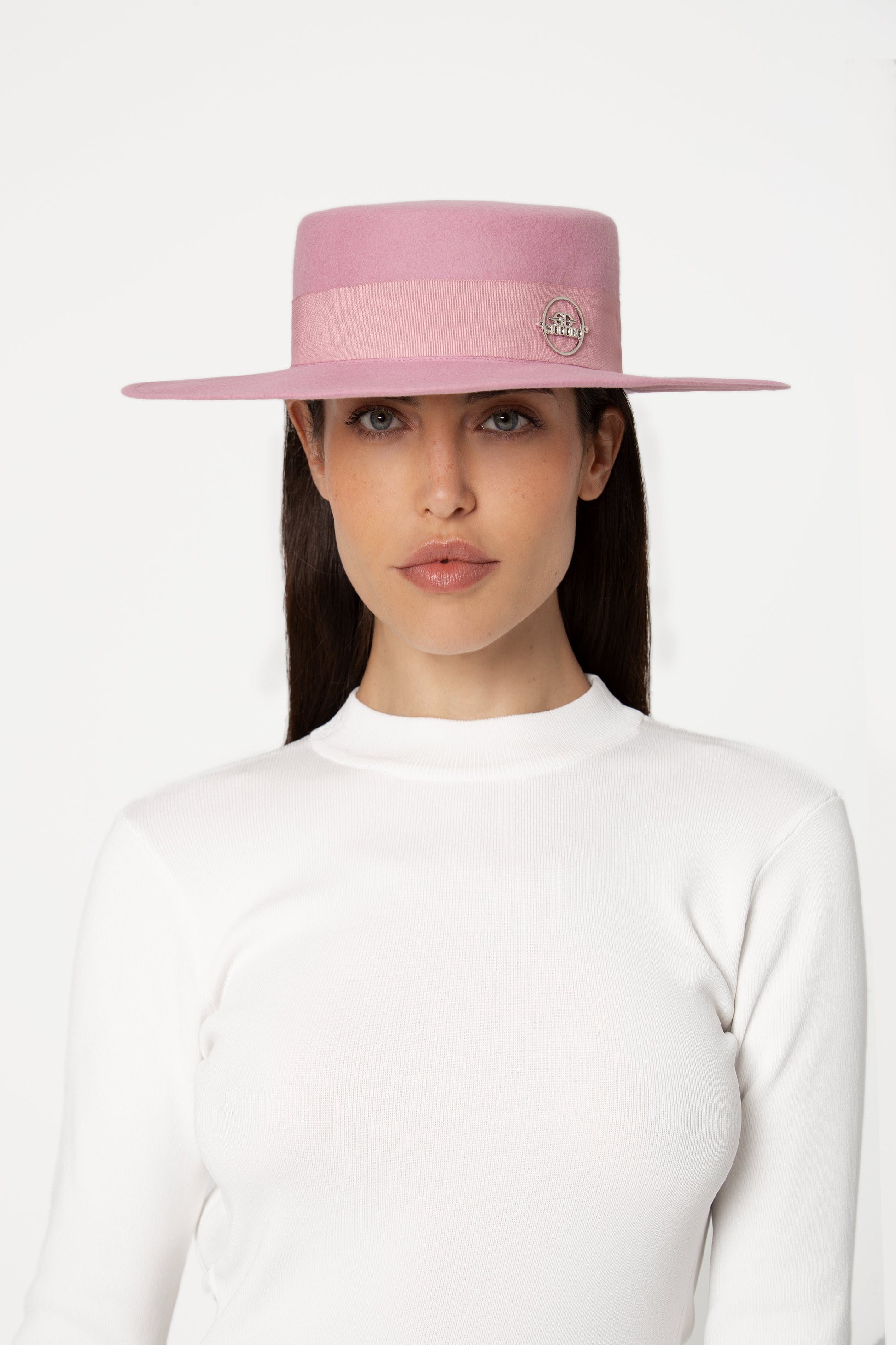 Elevate your sense of elegance with Giodoro canotier hat in luxurious rose felt, adorned with a chic grosgrain ribbon—a seamless blend of sophistication and style.