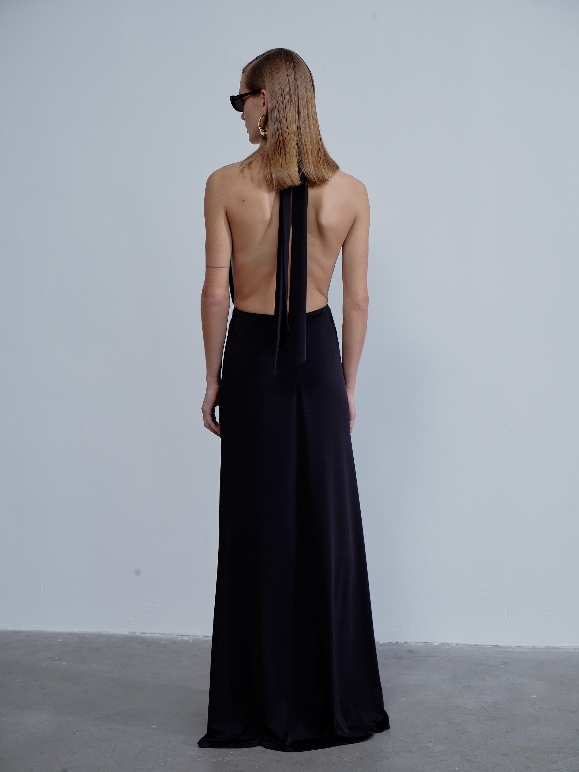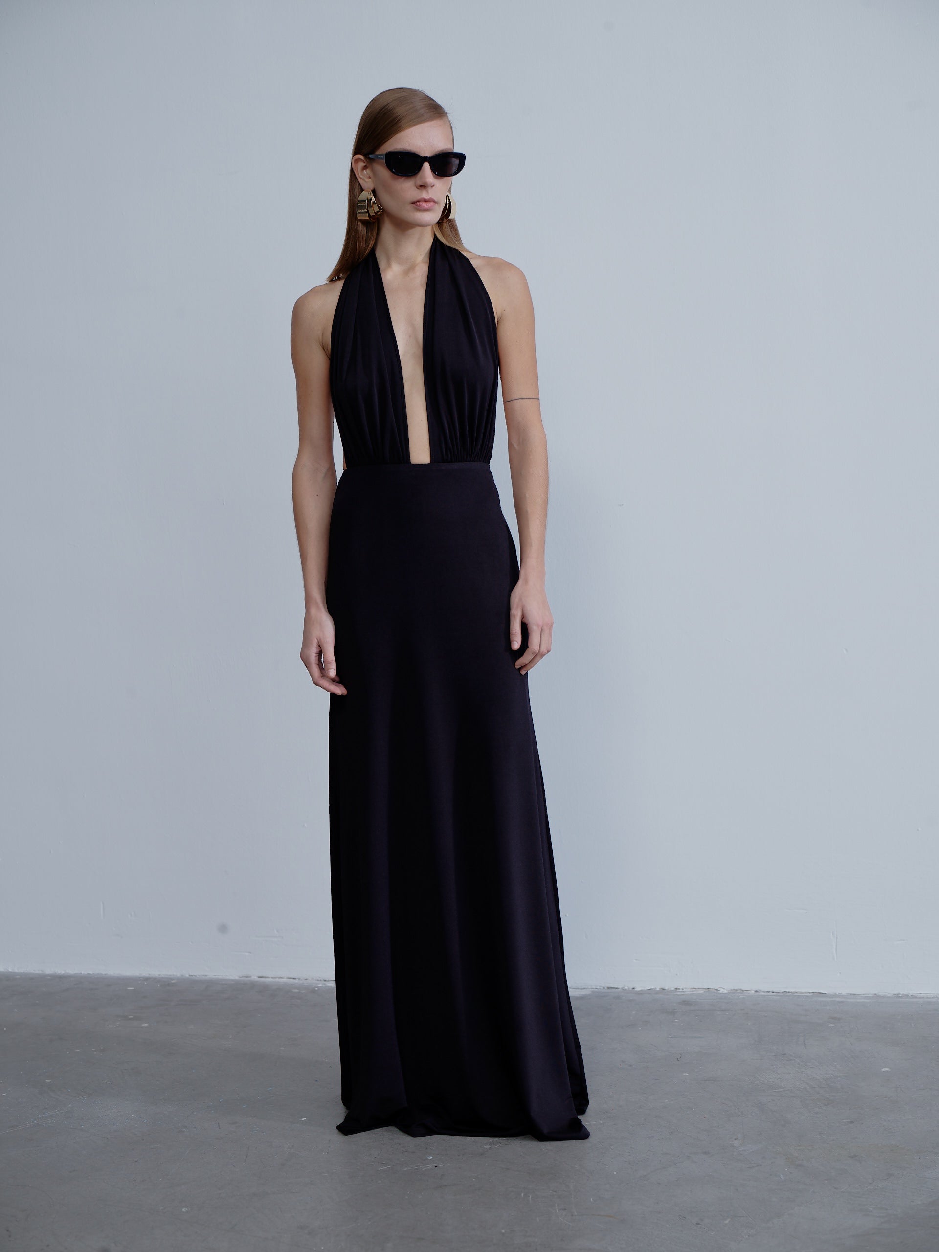 Ines Jersey Long Dress in Noire