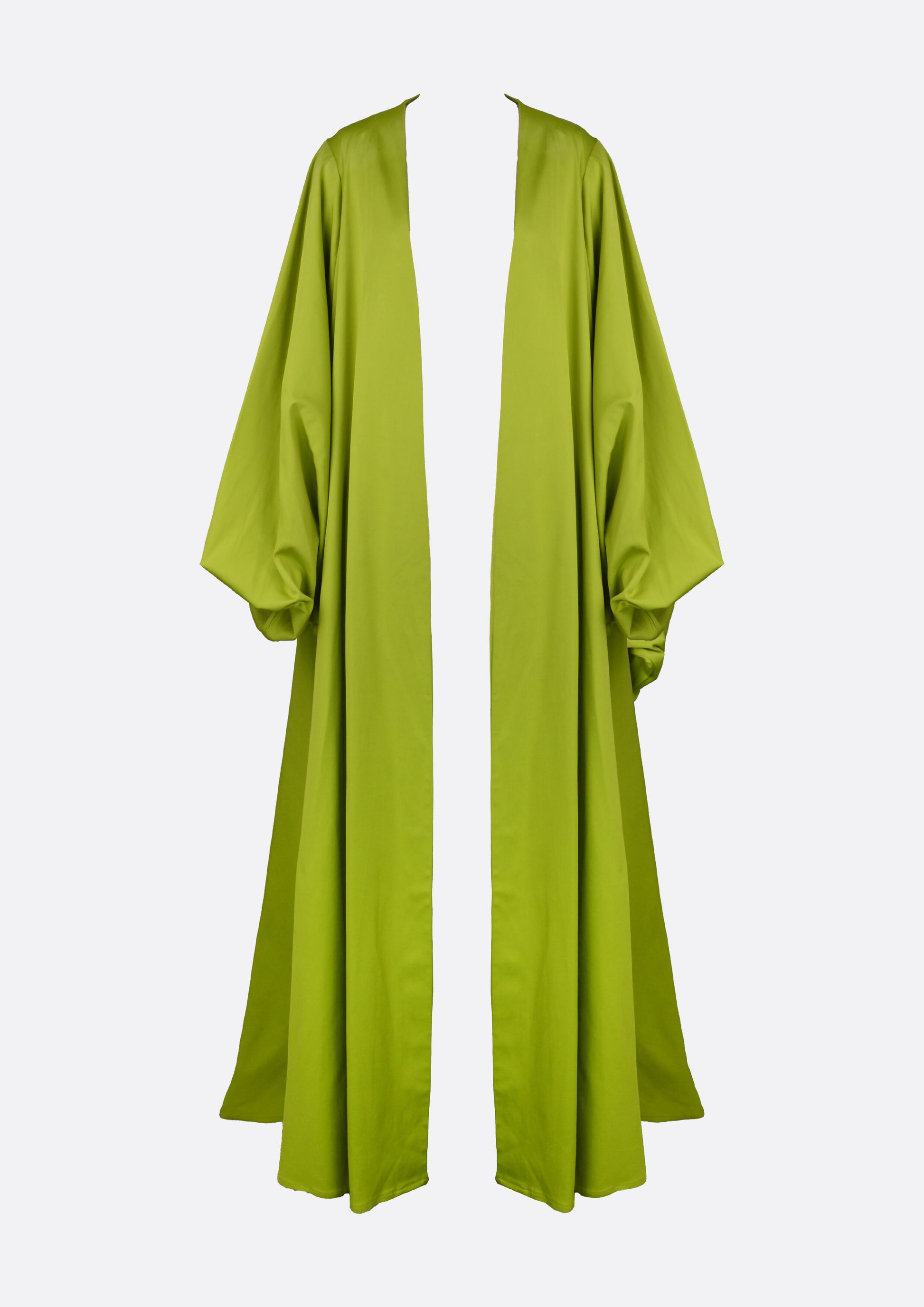 Cape de soirée en ottoman coloris vert pomme MORPHÉE, avec manches bouffantes resserrée au poignet.