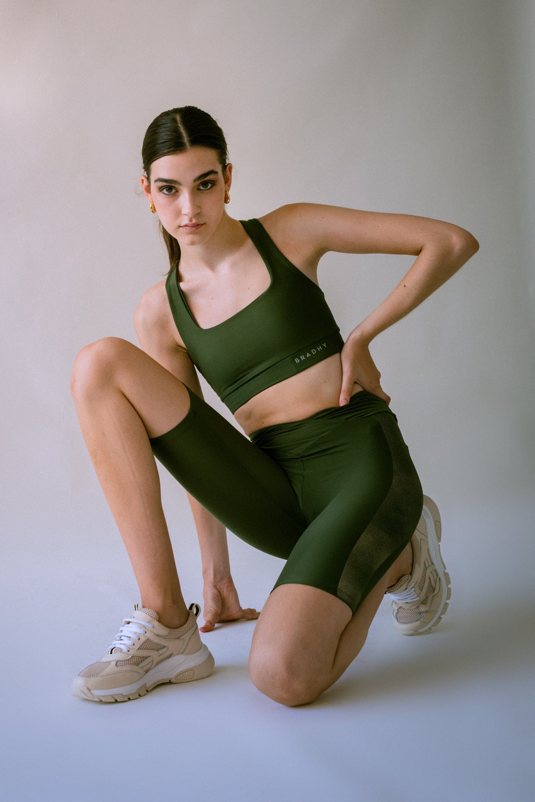 Sports top with a round neckline and crossed back. Allows you to practice low and medium impact sports. "Second skin effect" fabric with a natural relief in the animal skin effect fabric, which allows comfortable support and freedom of movement. Resistant garment due to quick drying with UPF+40 sun protection.