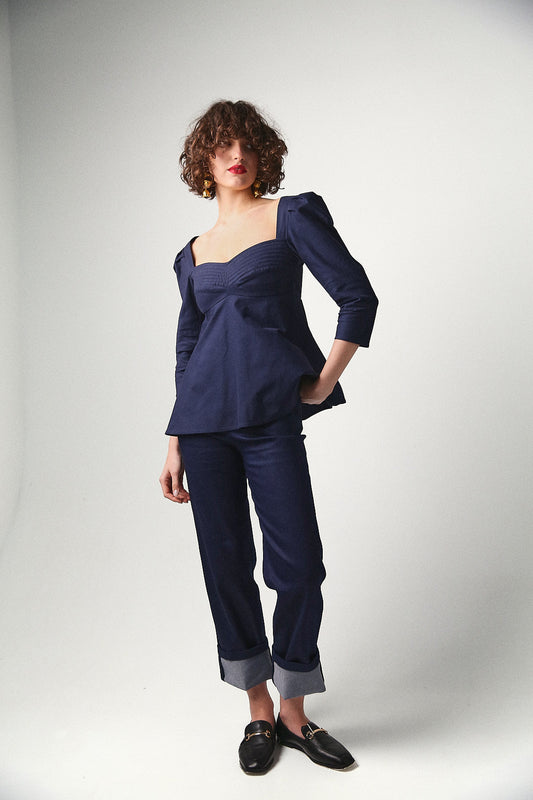 Tina Linen Trousers in Dark Navy