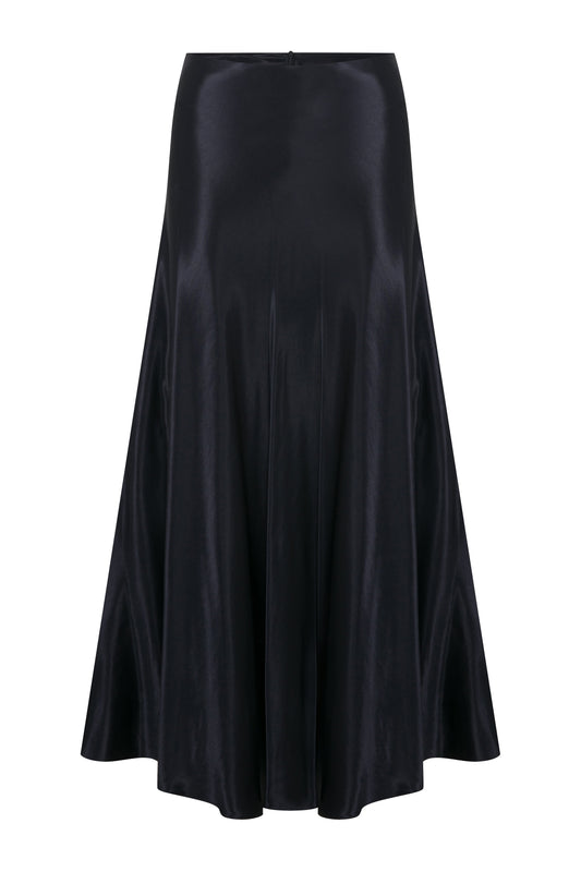 Lia Satin Maxi Skirt in Black