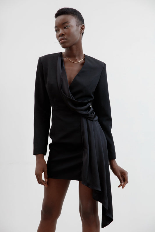 Rocha Asymmetric Mini Satin Dress in Black