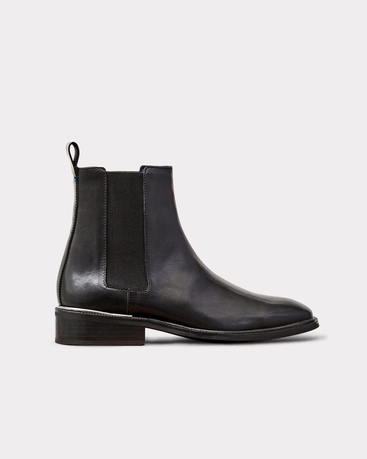 A modern alternative to the classic Chelsea boot, this sleek design with subtle detailing makes The New Classic a versatile pair. This black ankle boot is handmade in Portugal from supple Italian leather, featuring elasticised side panels and a padded insole for optimum comfort and pull-on ease. Featuring an almond toe and set on a modest heel with rubber outsole for durability, these black leather ankle boots will be your go-to everyday pair.