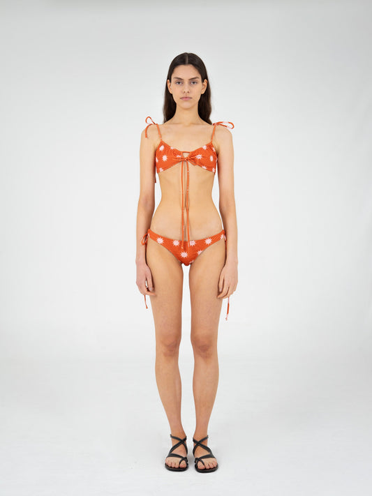 Illusion Sun-Printed Red Bikini Top