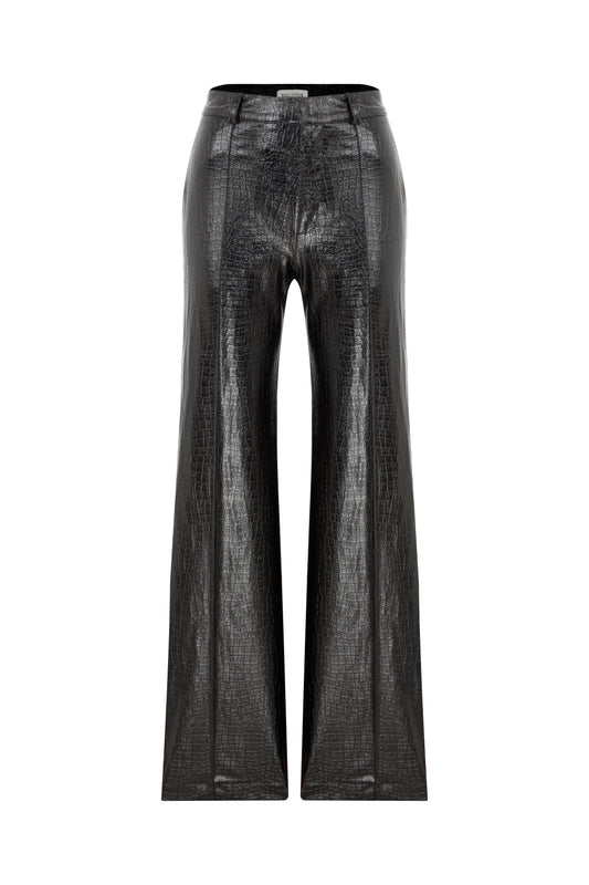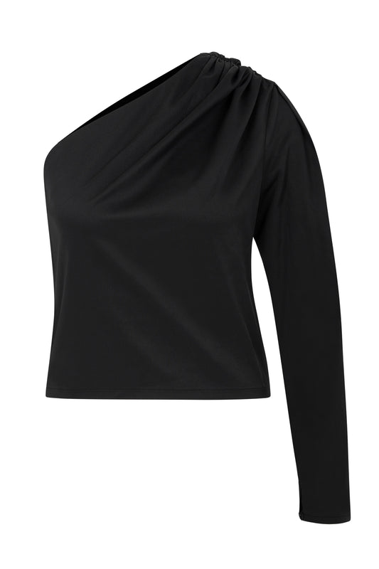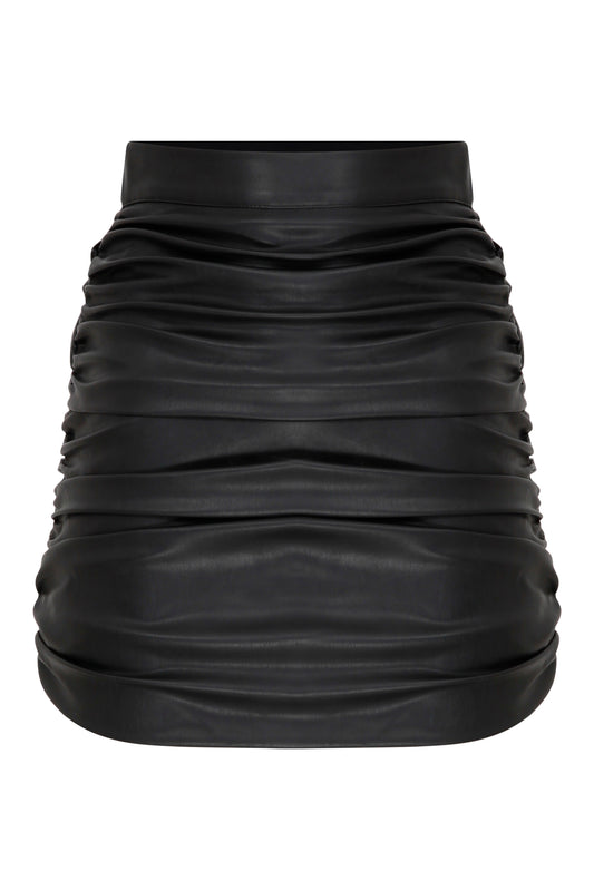 Chels Ruched Vegan Leather Mini Skirt in Black