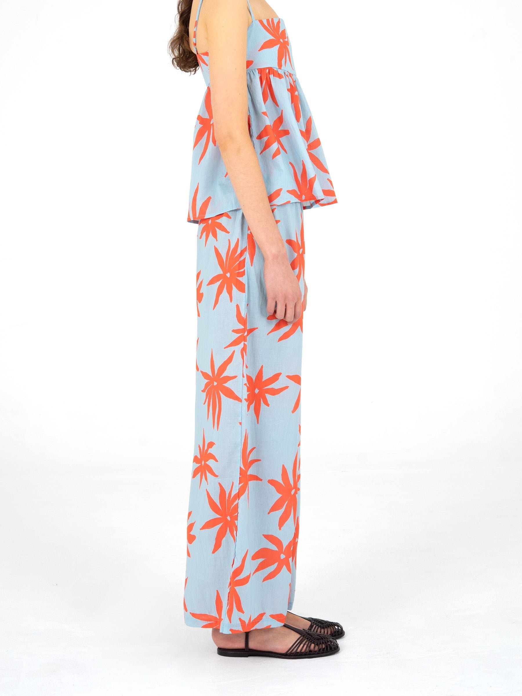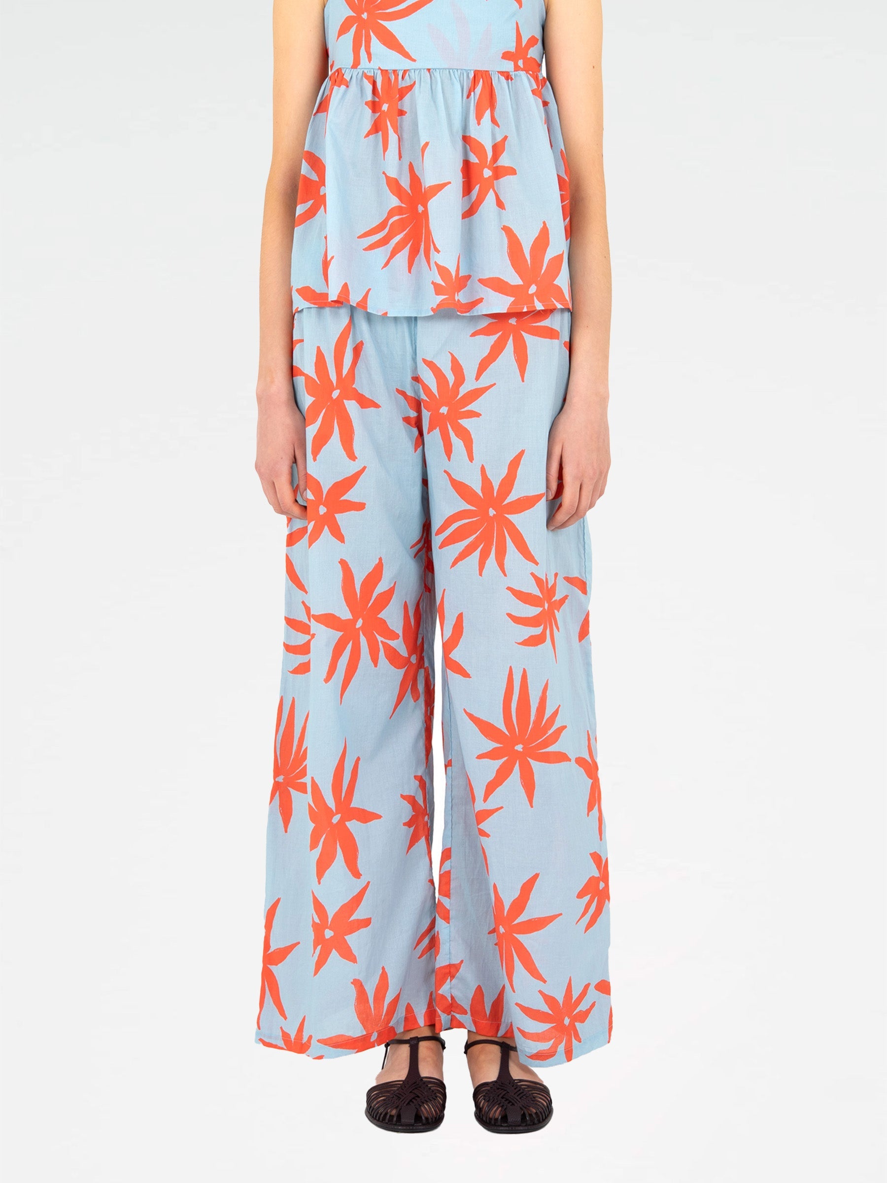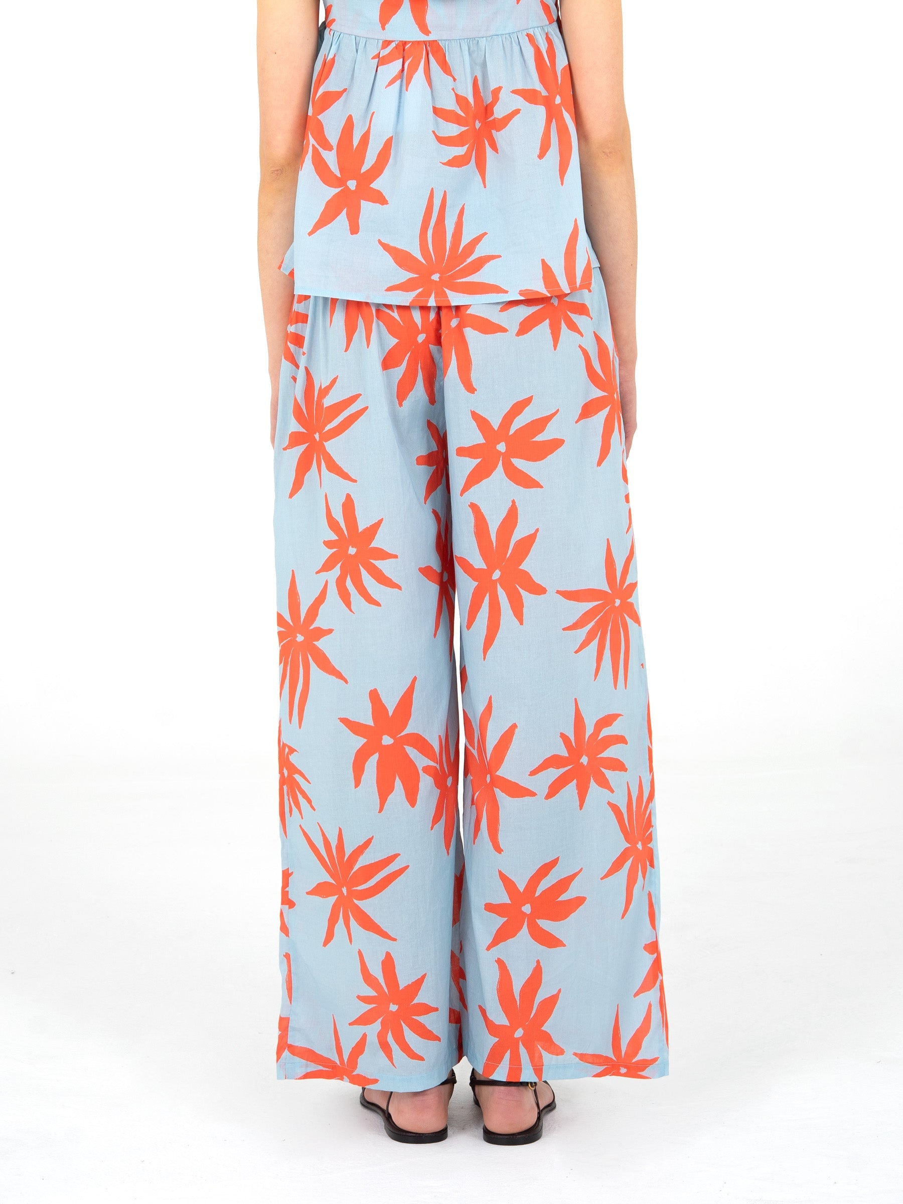 Long trousers with a floral print. Low-rise with an elastic waistband. Straight, wide leg.