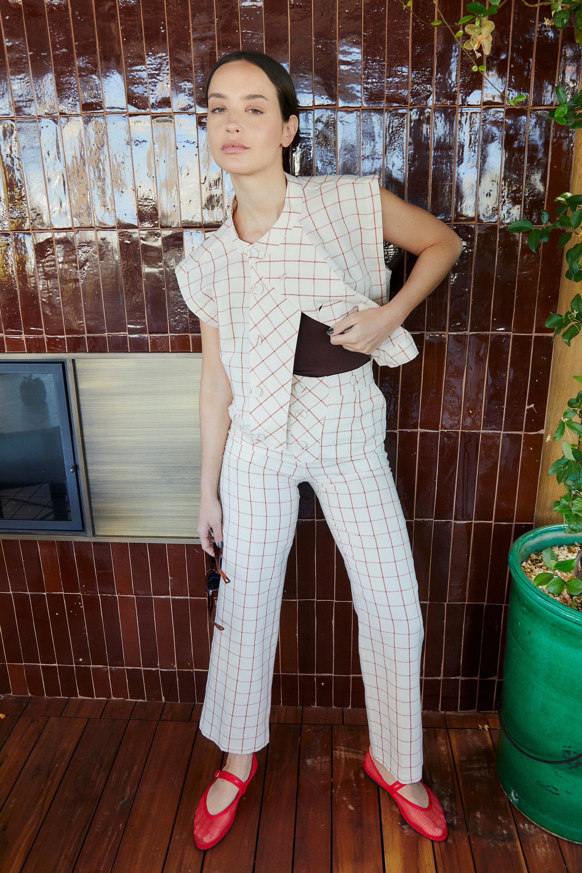 Our signature '3 in 1' jumpsuit in a orange checked thin cotton fabric. Fresh and colourful for Summer non-stop days where you don't want to miss on style.